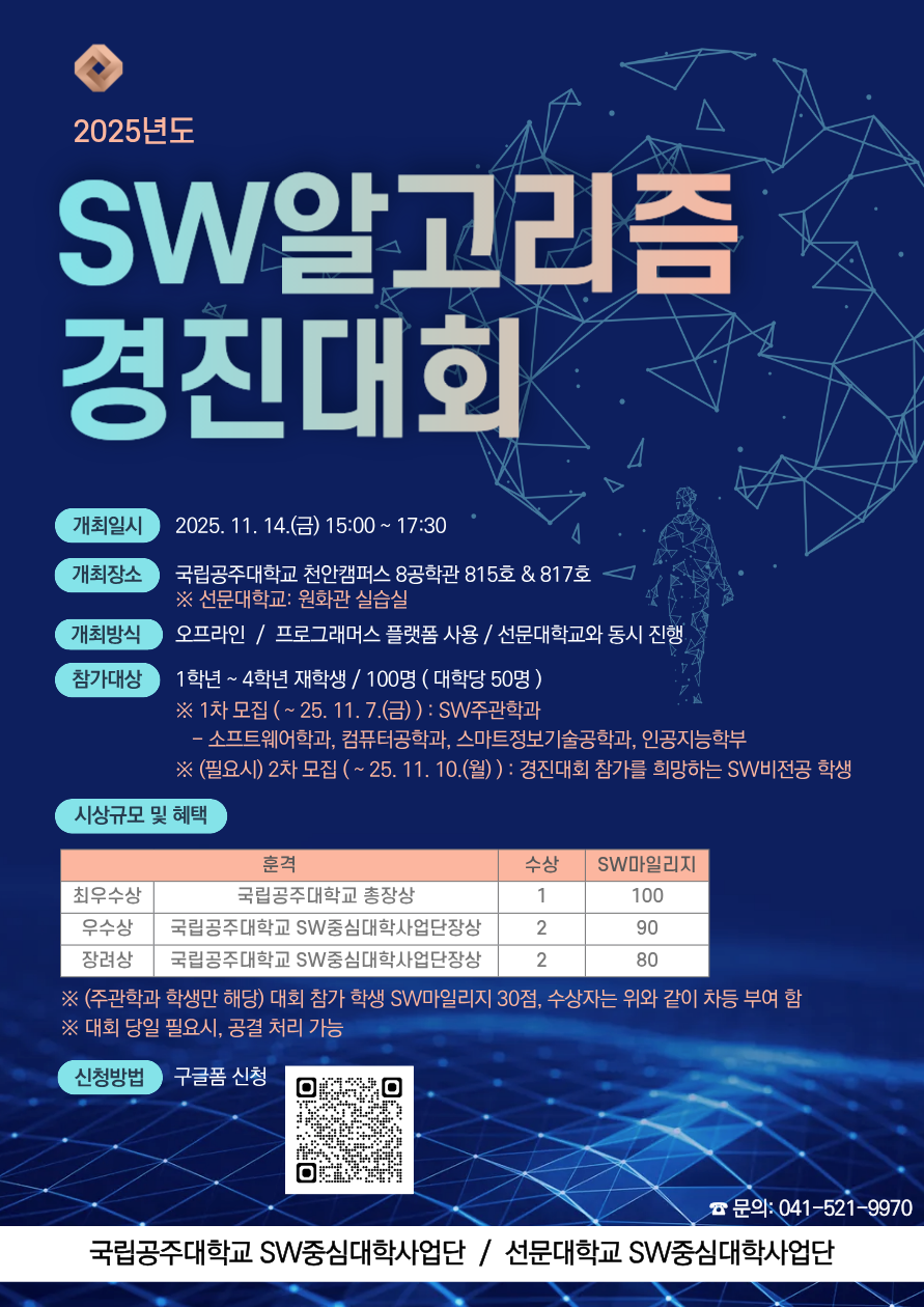 [에듀플러스]국립공주대 SW중심대학사업단, “AI·SW 실전형 인재 양성 강화…2025년 SW알고리즘 경진대회 성황리 개최 2025.11.17