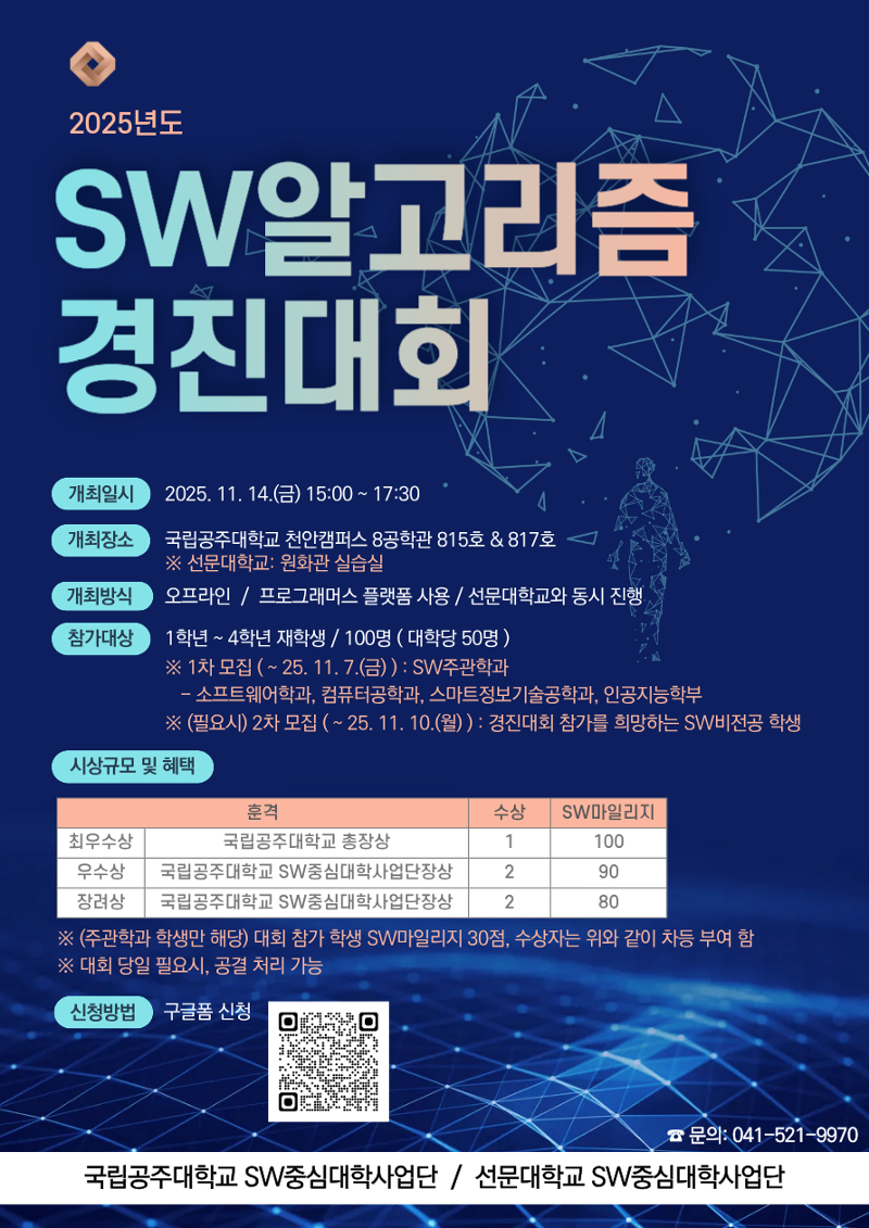 (공지) 2025년 SW알고리즘 경진대회 참여신청 안내 (구글폼 참여신청:11.7. (금) 까지)