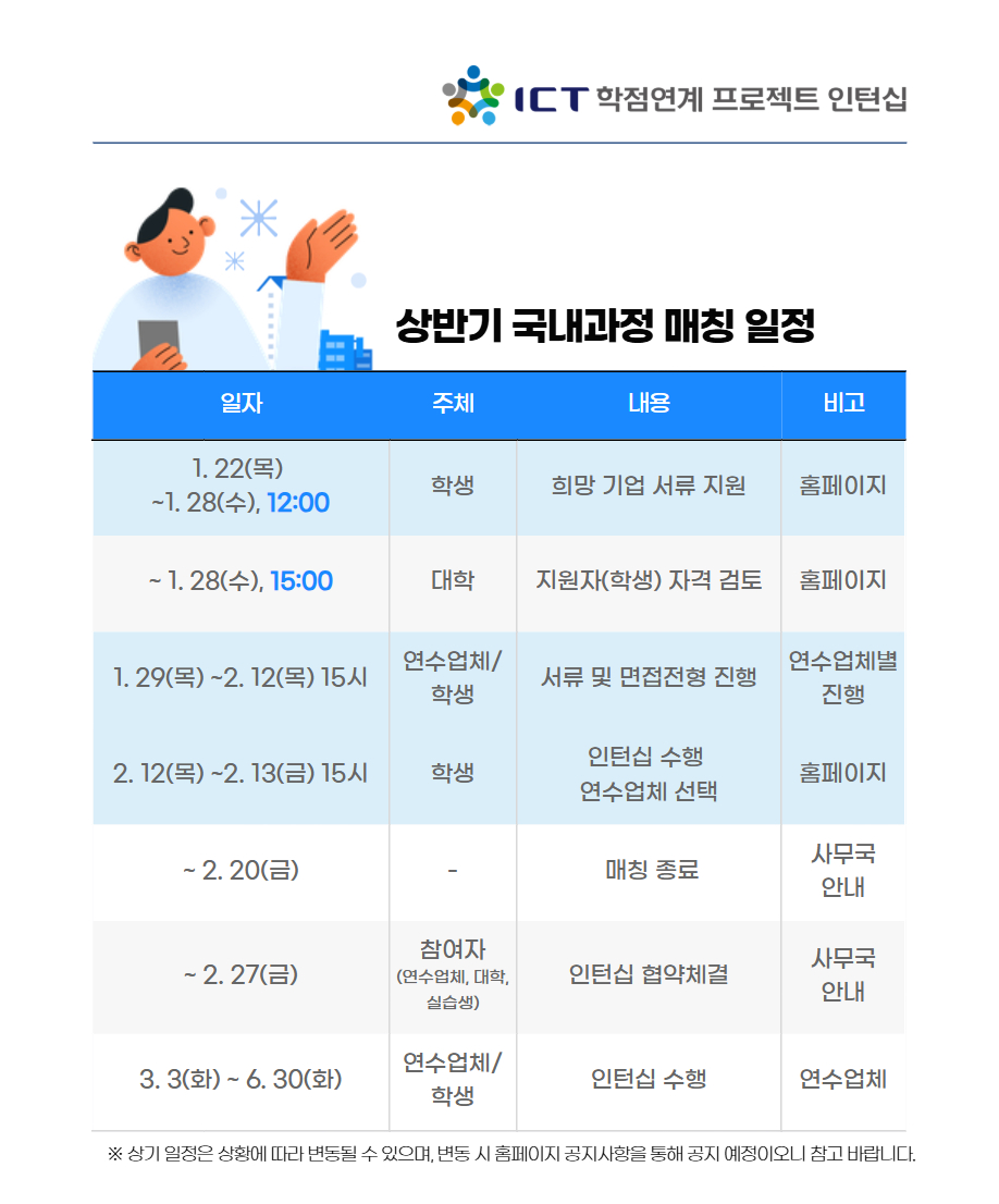 2026년 ICT 학점연계 프로젝트 인턴십 상반기 국내과정 학생 모집